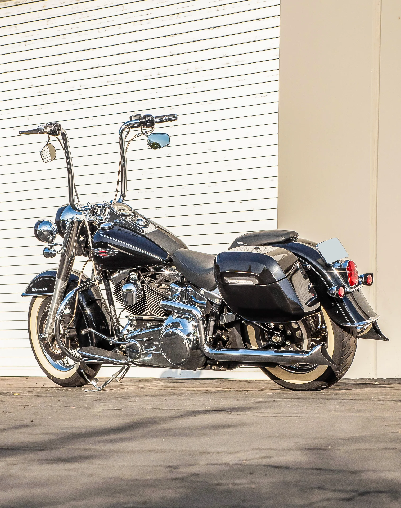 40L - Lamellar Raven Extra Large Painted Motorcycle Hard Saddlebags for Harley Softail Deluxe FLSTN/I